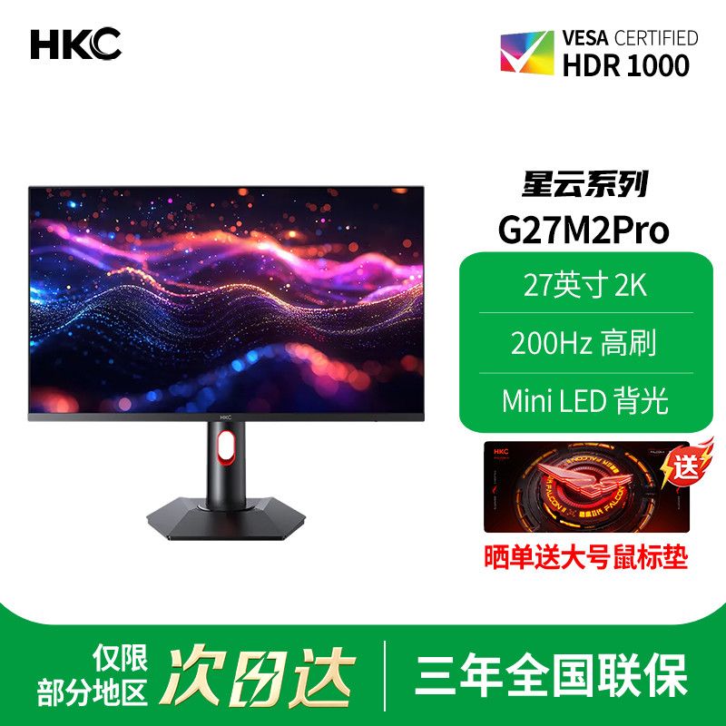 HKC 27英寸显示器 G27M2Pro 高性能MiniLED电竞屏现正火热促销中,采用先进MiniLED背光技术,带来更细腻的画质表现与超高对比度,支持2K超清分辨率与200Hz疾速刷新率,画面流畅顺滑,轻松应对各类大型游戏与高速动态场景,响应更快,细节更清晰,沉浸感十足。无论是竞技对战还是日常办公,都能提供卓越视觉体验。