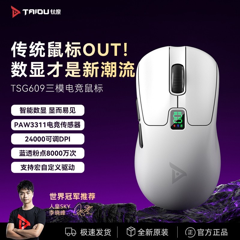 钛度TSG809千机伞三模无线鼠标,专为游戏电竞设计,支持2.4G无线、蓝牙和有线三种连接模式,适配多种设备轻松切换,轻量化镂空结构贴合手型,长时间使用依然舒适自如,搭载静音微动,点击清脆顺滑,有效降低噪音干扰,无论是办公还是 gaming 都能畅快操作。