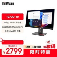 联想Lenovo ThinkVision T27UD - 40是一款27英寸的显示器,它属于T27p升级款。这款显示器拥有四边微边设计,能带来出色的视觉体验。其具备4K屏,显示清晰细腻,色彩丰富。还采用了硬件低蓝光技术,能有效减少蓝光对眼睛的伤害,呵护用眼健康。它配备了以太网口和Type - C接口,方便连接各种设备。此外,该显示器支持可升降旋转功能,能根据个人需求调整到合适的使用角度。