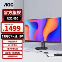 AOC 31.5英寸4K显示器U32N10现正热促,原价1699元,现活动售价1699元,参与每满1599元减200元及满1000减20元优惠活动,下单即享直降,实付低至1479元!这款高端办公设计显示器搭载38402160超清分辨率,支持HDR10技术,亮度达350cd/㎡,呈现更丰富细腻的画质表现,配合99% sRGB、95% DCI-P3、89% NTSC广色域覆盖,出厂精准校色,色彩还原更真实,无论是图像处理、视频剪辑还是日常办公都能轻松应对。显示器支持PBP/PIP双画面分屏功能,提升多任务效率,DC背光技术结合低蓝光模式,有效减少屏幕闪烁与有害蓝光,长时间使用更护眼。支架支持升降、俯仰、左右旋转及竖屏显示,灵活适配各种使用场景,提升舒适度与工作效率,是设计师、程序员及办公用户的理想之选。节能台式电脑搭配首选,高性价比尽在此次限时优惠。