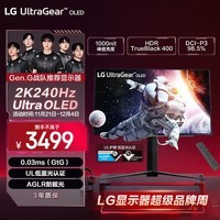 LG 26.5英寸OLED显示器2K240Hz高刷电竞屏震撼促销中,现京东活动售价3499元,上海福建等地区可享国补立减15%优惠,并叠加PLUS会员立减17.49元,下单1件到手价低至2959.29元,性价比空前!这款27GS95QE显示器采用顶级OLED面板,支持2K分辨率与240Hz超高刷新率,灰阶响应低至0.03ms,画面流畅无拖影,搭配HDMI 2.1接口,完美适配次世代主机与高性能PC。支持HDR400高动态范围,色彩表现真实细腻,明暗细节丰富,无论是激烈电竞还是影音娱乐都能带来沉浸式视觉体验。26.5英寸屏幕尺寸兼顾视野与精准操控,是专业玩家和高端用户的理想之选,限时优惠不容错过。