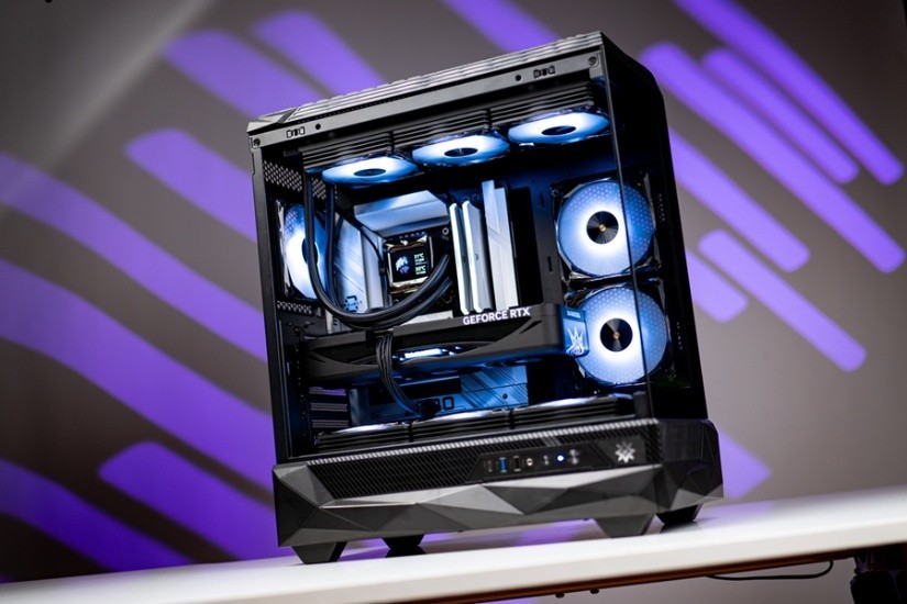 作为整机“门面担当”,黑曜石机箱采用星曜系列独特的钻石切割外观,侧透钢化玻璃搭配磨砂金属面板,通透质感与细腻拉丝纹理碰撞出沉稳高级感。同时兼容性拉满,支持ATX/M-ATX/ITX全规格主板,以及旗舰显卡与360水冷。