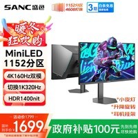 SANC推出的这款27英寸电竞显示器DM72u简直是游戏玩家的福音。它拥有4K分辨率,能呈现出极其清晰细腻的画面,让你仿佛置身于游戏世界当中。具备160Hz双模和320Hz的高刷新率,可有效减少画面残影和撕裂,带来流畅顺滑的游戏体验。采用4608灯珠MiniLED技术,搭配QD量子点,色彩表现更加出色,HDR1400的高亮度让画面亮部更亮、暗部更暗,层次感十足。
