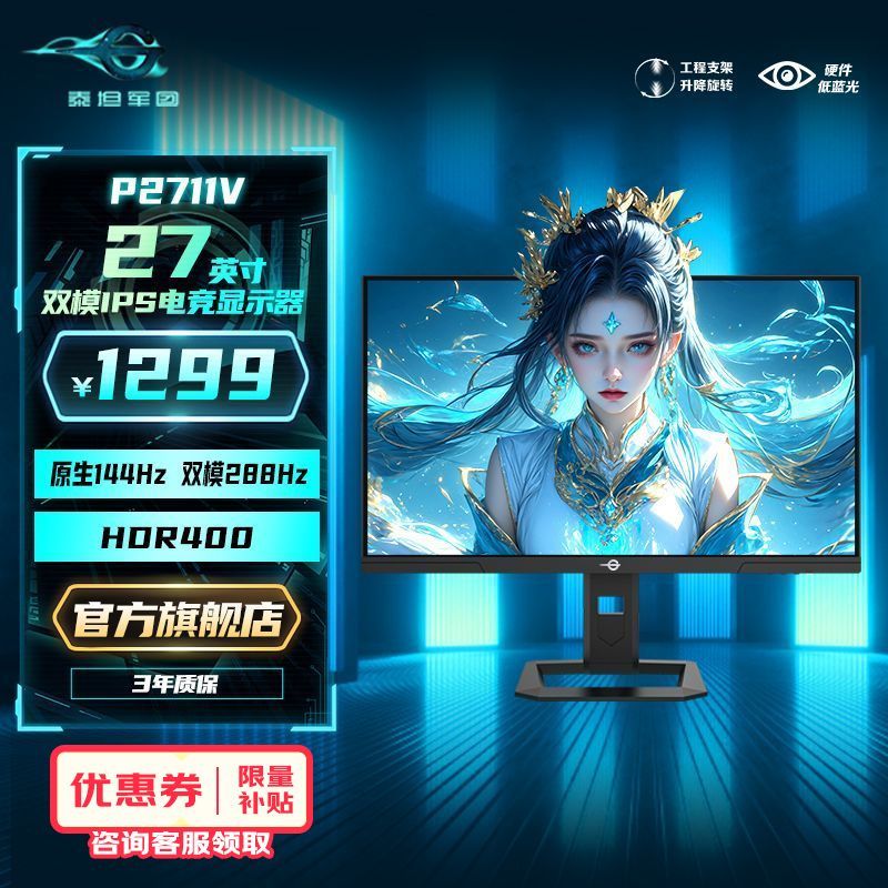 泰坦军团P2711V 27英寸4K显示器重磅优惠来袭!采用顶级IPS屏幕,支持4K超高清分辨率,画面细腻逼真色彩还原精准,带来影院级视觉享受;144Hz高刷新率搭配双模1K与288Hz硬件低蓝光技术,无论是畅玩大型游戏还是长时间办公观影,都能确保流畅顺滑且护眼舒适。目前该商品在拼多多参与百亿补贴活动,售价直降至1189元,下单立享9.5折再叠加9折平台消费券,到手价仅需1079元,性价比爆棚,机会难得,抢到就是赚到!