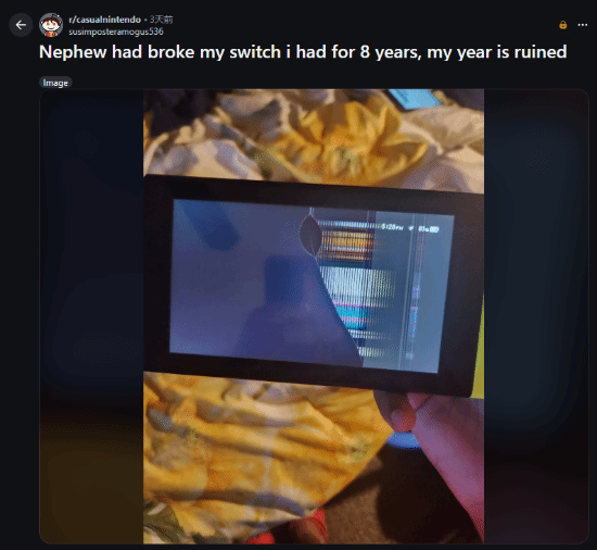 一台陪伴了八年的Switch游戏机,因小侄子一天的玩耍而意外损坏,此事在近期引发了不少网友的讨论。发帖人无奈表示,这台设备陪自己走过了八年时光,如今却毁于一旦,感觉今年彻底被毁了。