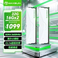 铭瑄这款32GB(16GBX2)套装的DDR4 3600台式机内存条,属于W4白猎鹰系列马甲条,采用CL16海力士颗粒。