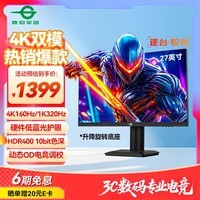 泰坦军团P2712V是一款27英寸的FastIPS双模显示器,具备强大性能。它支持4K/160Hz、FHD/320Hz的高刷新率,能带来流畅顺滑的画面显示,无论是玩游戏还是处理高动态画面都游刃有余。拥有95%DCI - P3广色域,色彩表现丰富且精准,可呈现出逼真绚丽的视觉效果。同时具备HDR400技术,让画面的亮部更亮,暗部更暗,增强画面的层次感和立体感。现在这款显示器在京东自营售价1399元,晒单还赠20元京东E卡,实际到手价仅需1379元。