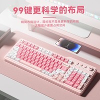 狼蛛F3099有线/蓝牙/无线键盘,是一款拥有三模连接功能的99键机械手感键盘,其外观为粉色,很适合女生使用。它既适用于电竞游戏场景,让玩家在游戏中操作更流畅,也能满足办公需求,无论是笔记本还是台式电脑都能适配,还具备RGB灯光效果。