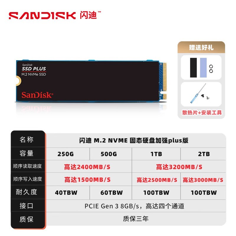 闪迪SanDiskPCIe3固态硬盘250GB游戏硬盘笔记本SSD电脑M.2Plus加强版高速稳定读写流畅适配多种主流笔记本与台式机带来疾速开机、秒开软件和流畅游戏体验采用高品质颗粒和先进主控技术有效提升使用寿命与数据安全性目前天猫精选活动售价449元参与立减优惠150元叠加首单礼金30元下单1件实付低至269元浏览商品或加购后再前往淘金币频道使用我的足迹功能还可额外抵扣金币最终到手价仅需233.08元性价比出众库存有限抓紧抢购