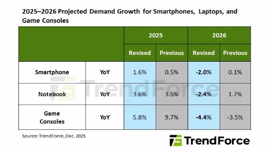 尽管4.4%的出货下滑幅度看似有限,但市场前景并不乐观。TrendForce提醒,随着PS6与下一代Xbox发布周期临近,2027年游戏主机市场或进入一段明显放缓的过渡阶段,消费者购买意愿与厂商出货计划都将趋于保守。