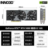 映众 INNO3D RTX 5080 曜夜X3 16G OC独立显卡采用全新架构,适用于4K游戏、AI运算以及设计渲染等场景。