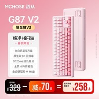 迈从 G87 V2/K87S旋钮无线机械键盘是一款专为电竞游戏与客制化爱好者打造的高性能三模机械键盘,支持有线、蓝牙和无线连接,兼容多种设备,办公娱乐无缝切换。采用雾桃渐变配色设计,颜值出众,搭配快金轴V3手感顺滑响应迅速,触发灵敏,适合长时间打字与激烈游戏使用。内置大容量电池,续航持久,搭配独立旋钮便捷调节音量或亮度,提升操作体验。目前京东售价304元,参与满29元打8.5折优惠活动,下单1件实付低至258.4元,性价比出众,是追求个性与性能用户的理想之选。
