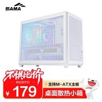 先马SAMA趣造3 Type - C白色桌面便携手提式Matx小机箱,机箱采用四面网孔设计,拥有5个风扇位,散热表现出色。它能适配高度≤160mm的散热器,可容纳长度达350mm的显卡,还支持ATX电源。