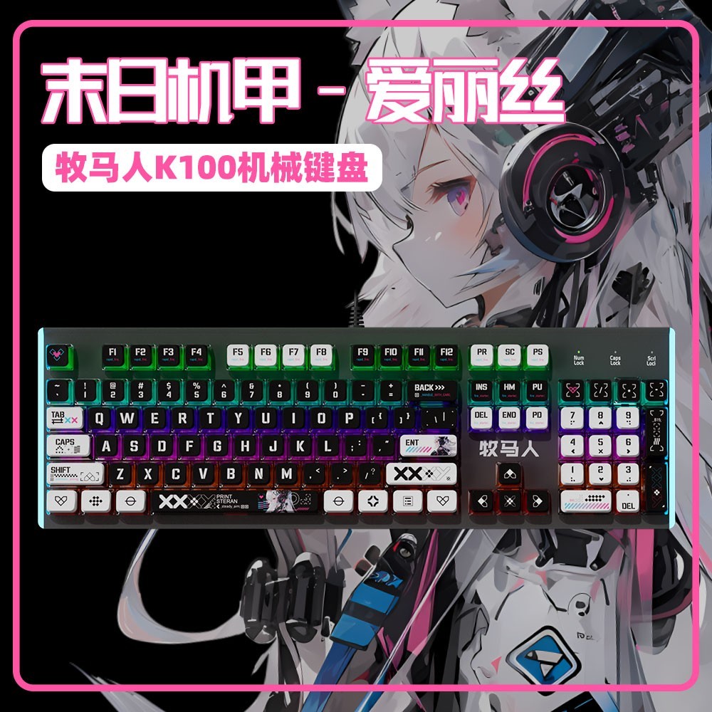 喜欢玩游戏的男生看过来!这款牧马人机械键盘,搭配二次元主题爱丽丝键帽,充满个性魅力。它是有线电脑电竞专用键盘,能为游戏操作带来流畅稳定体验。