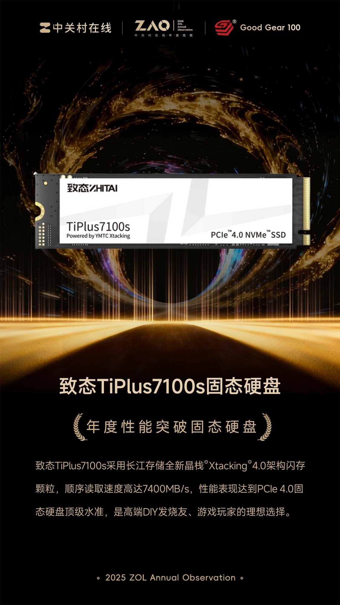 本文属于原创文章,如若转载,请注明来源:GG100 2025年度性能突破固态硬盘:致态TiPlus7100s固态硬盘https://diy.zol.com.cn/1096/10969304.html