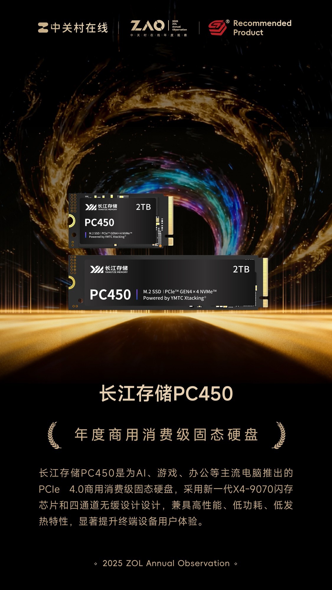 本文属于原创文章,如若转载,请注明来源:ZOL推荐2025年度商用消费级固态硬盘:长江存储PC450消费级固态硬盘https://diy.zol.com.cn/1096/10969313.html