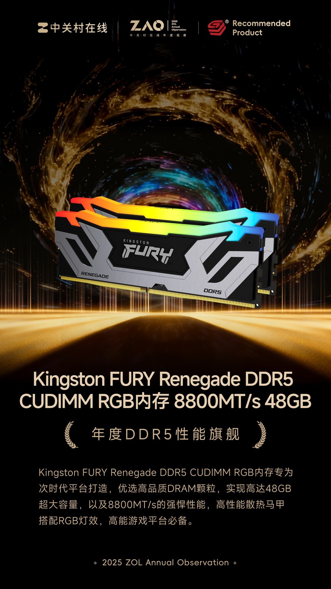 本文属于原创文章,如若转载,请注明来源:ZOL推荐2025年度DDR5性能旗舰:Kingston FURY Renegade DDR5 RGB 8800MT/shttps://diy.zol.com.cn/1096/10969511.html