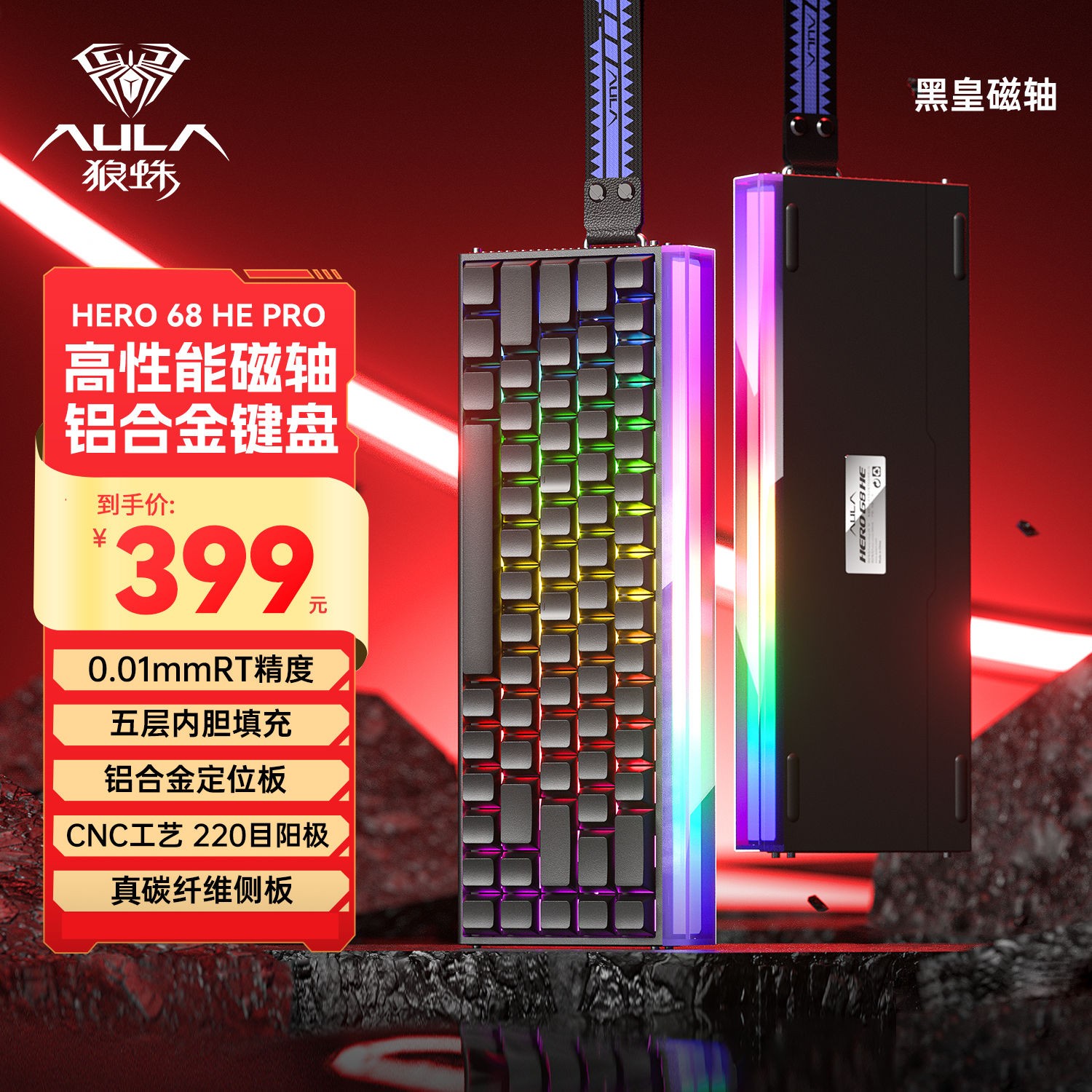 狼蛛 Hero68Ultra铝坨坨磁轴键盘高性能游戏有线万磁王轴电竞FPS机械键盘,采用高端铝合金机身设计坚固耐用质感出众,搭载万磁王磁轴响应灵敏精准,支持线性调节触发键程,带来极致操控体验,特别适合FPS等竞技类游戏使用,68键紧凑布局节省桌面空间同时保留实用功能,全键无冲设计确保多键同时按下不误触,是玩家追求速度与稳定性的理想之选。