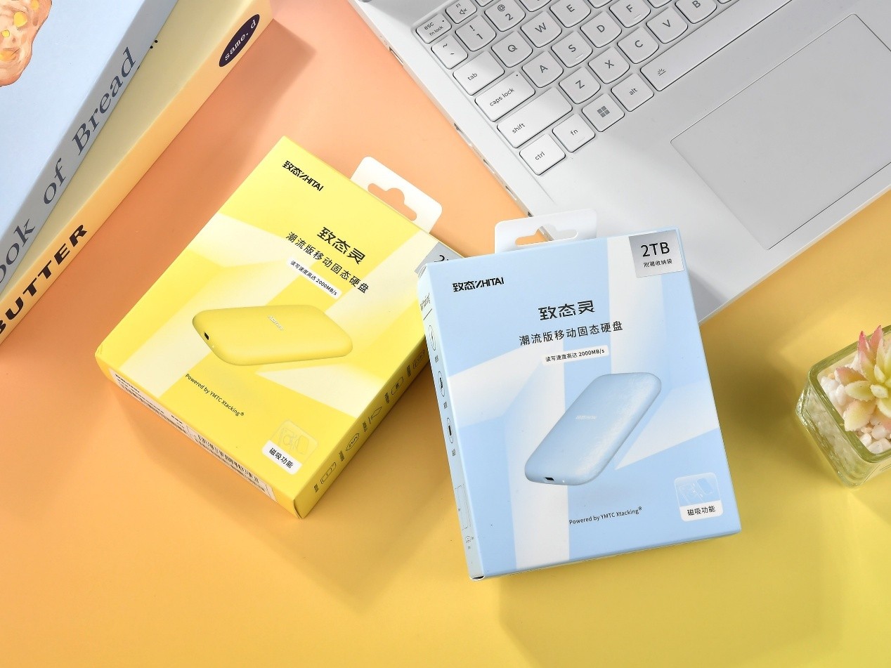 与市面上绝大多数移动固态硬盘不同,致态灵·潮流版移动固态硬盘的ID设计显然更容易获得年轻潮流群体的青睐。其采用多彩外壳设计,我们拿到的为星耀黄和晨雾蓝。两种配色都比较淡雅,视觉上极为年轻且有活力。