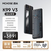 迈从 K99 V3 客制化机械键盘 远山渐变配色搭配琉光冰淇淋轴带来极致视觉与手感享受,搭载全自研星斗方案和低功耗技术,续航更持久性能更稳定,配备厚润麻将音多功能旋钮,操作便捷手感清脆,独特不锈钢PVD装饰背板提升整机质感与档次,支持全自研MHUB驱动实现深度自定义,满足个性化需求,现新品优惠原价539元直降至389元预售价,老用户专享到手价仅需369元,高颜值高性能一步到位,喜欢客制化键盘的朋友不容错过,抓紧入手享受超值体验。
