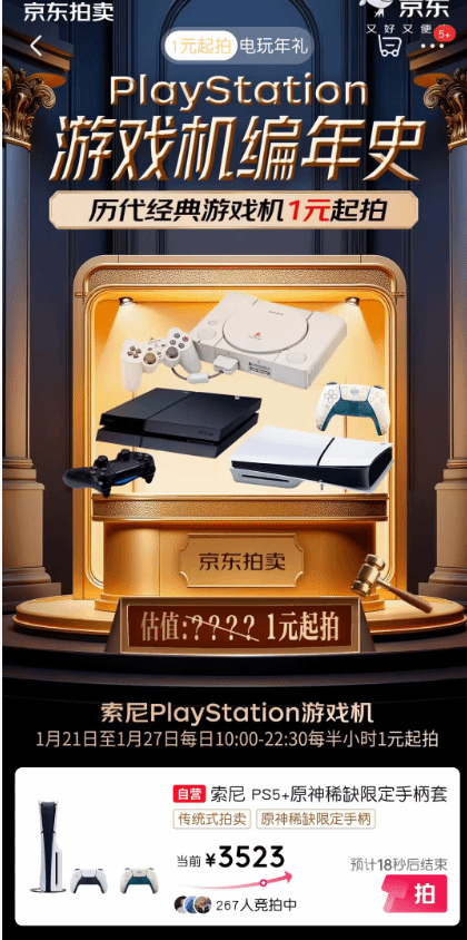 京东近日上线了一场主题为“PlayStation历代游戏机拍卖会”的特别活动,吸引了众多游戏爱好者的关注。此次拍卖活动以极具吸引力的1元起拍价拉开帷幕,涵盖索尼多年来推出的主要家用与掌上游戏主机,堪称一次完整的游戏设备收藏盛宴。