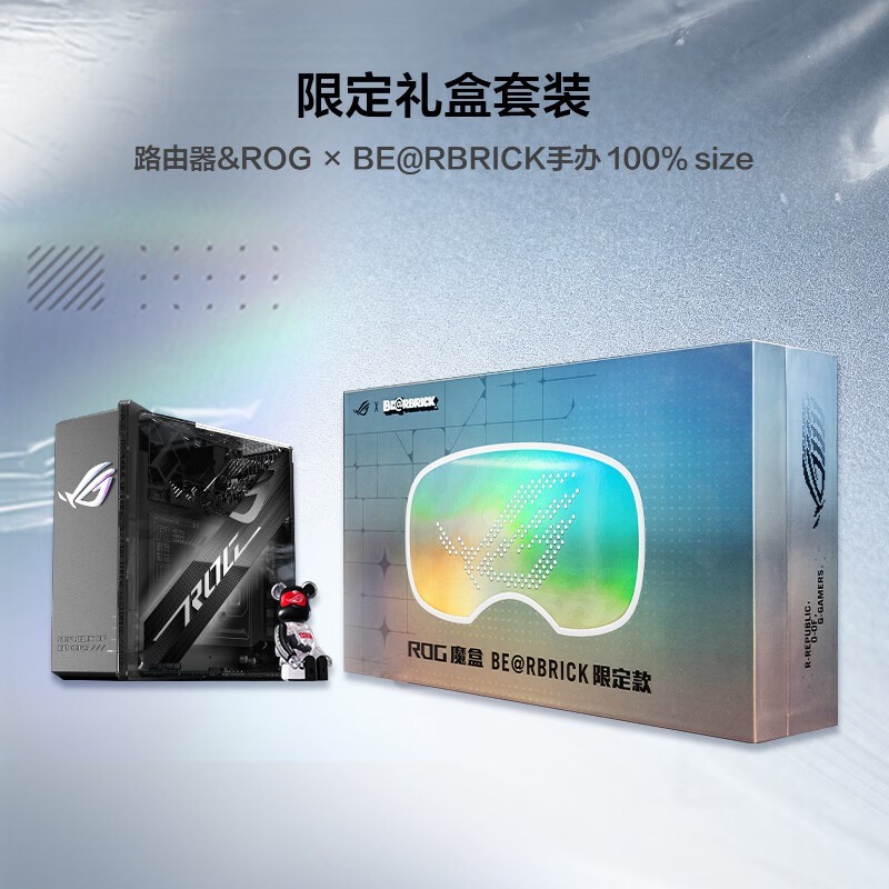 ROG魔盒BE@RBRICK款礼盒WiFi7电竞无线路由器,融合华硕顶级电竞基因与潮流IP BE@RBRICK联名设计,搭载全新WiFi7技术,支持多频并发、超低延迟及Aimesh随心组网,专为高端游戏与高速多设备场景优化;礼盒内含ROG魔盒路由器、定制BE@RBRICK盲盒公仔及专属收藏包装,兼具性能实力与收藏价值;目前天猫精选活动售价2799元,领取满500减30元优惠券并叠加国补10%后,下单1件实付仅1836.11元,拆封后不支持无理由退货,抢购从速。