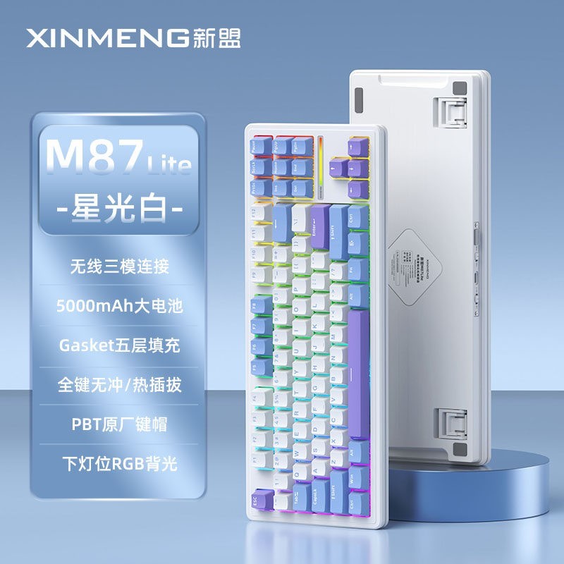 新盟M87Ultra客制化机械键盘,专为电竞游戏与办公打造。它具备三模蓝牙无线功能,能有效降低延迟,无论你是在酣畅淋漓地玩游戏,还是在高效专注地办公,都能有流畅体验。