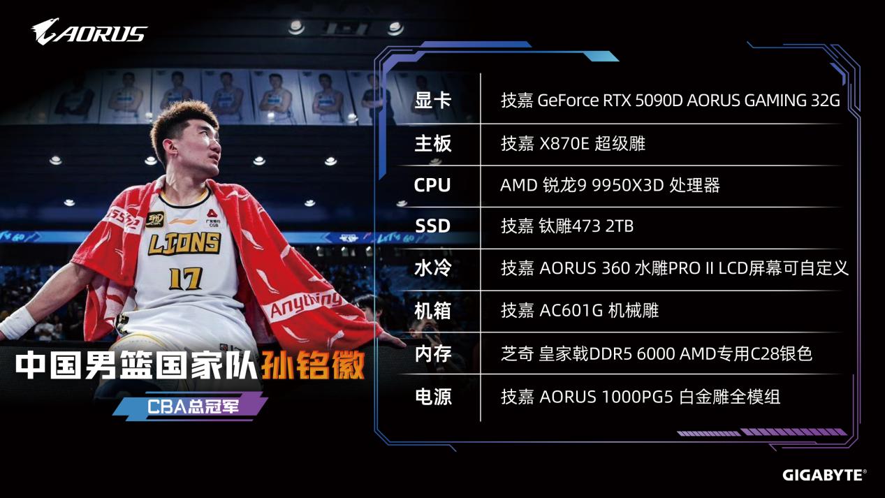 此次联动并非技嘉首次跨界体育圈。此前,技嘉曾为NBA总冠军、奥运会金牌得主贾维尔·麦基(JaVale McGee)打造专属定制主机,持续推动电竞文化与体育精神的全球融合。从职业赛场到电竞战场,技嘉始终以创新科技助力每一位追求极致的竞技者,并与中国玩家一道,共同见证并参与中国电竞事业的蓬勃发展。
