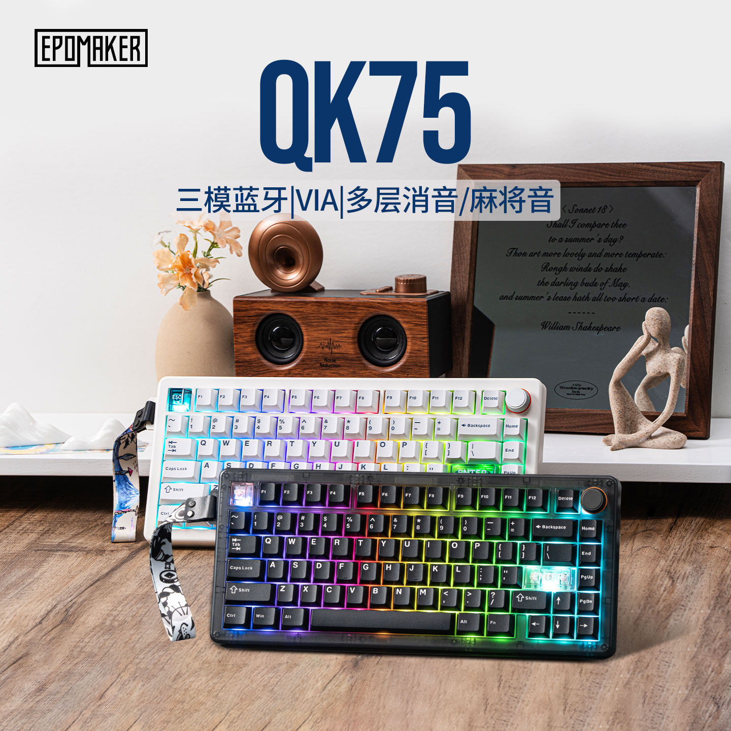 赤度QK75客制化机械键盘,采用gasket结构设计,手感柔韧顺滑,支持热插拔轴体,轻松更换个性轴芯;无线三模连接(2.4G/蓝牙5.0/有线),兼容多设备快速切换,内置大容量电池,续航持久;配备PBT双色键帽,耐磨不打油,适配电竞游戏与高效办公双重场景;75%紧凑布局,节省桌面空间,兼顾功能与颜值。