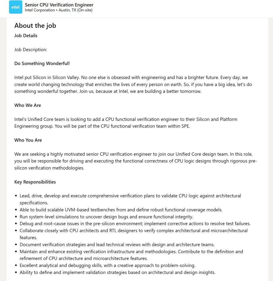 而英特尔最新招聘信息所示,英特尔正在组建一支工程师团队,组建统一核心设计团队,设计新一代处理器的新微架构。