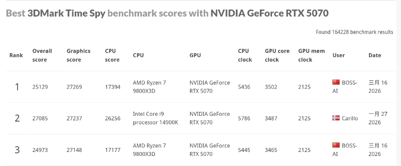 近日,根据3DMark官网测试数据,技嘉RTX5070 GAMING OC 12G魔鹰显卡在TimeSpy项目中取得27269分的优异成绩。在室温25°C环境下,该卡核心频率极限稳定运行于3.5GHz,充分展现了技嘉先进的散热架构与强大的核心调校实力。