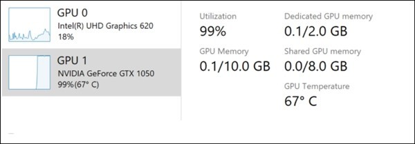 需要说明的是,任务管理器中只能显示独立GPU的运行温度,无法显示板载或集显的温度,同时这还需要你的独立GPU WDDM驱动程序模型版本高于2.4的显卡驱动才行。目前,该功能并不算完善,其仅能显示摄氏度的温度单位,并未给用户切换至华氏温度的选项。