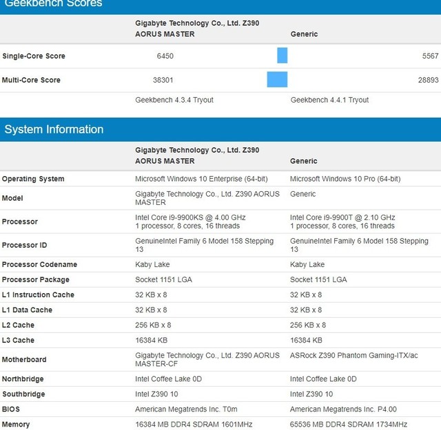 而除了i9-9900T,另一款i9-9900KS基本已经被石锤确认了,基本频率可达4.0 GHz,睿频可以5.0GHz,而且据说是全核睿频,但是功耗暂时没有透露,具体情况不得而知。