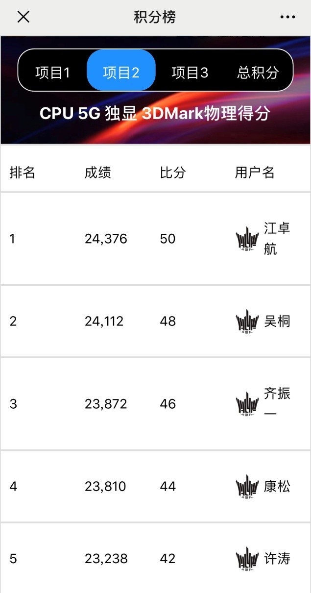其中,在双信道内存频率项目中,选手康松将5014MHz暂时领先,选手齐振一以5012MHz频率紧随其后,两位选手均采用HOFOC LAB 大师系列内存,CL时序为2231 31 63 2T,竞争十分激烈。在3DMark(独显)项目中,选手江卓航则使用HOFOC LAB 内存,配搭IntelCore i9-9900K 和GeForceGT 1030 在该项目中暂列第一;而在3DMark(核显)项目方面,则由选手吴桐利用以DDR4-4000CL 16-16-16-28 配搭IntelCorei9-9900K以21644分数暂时领先。