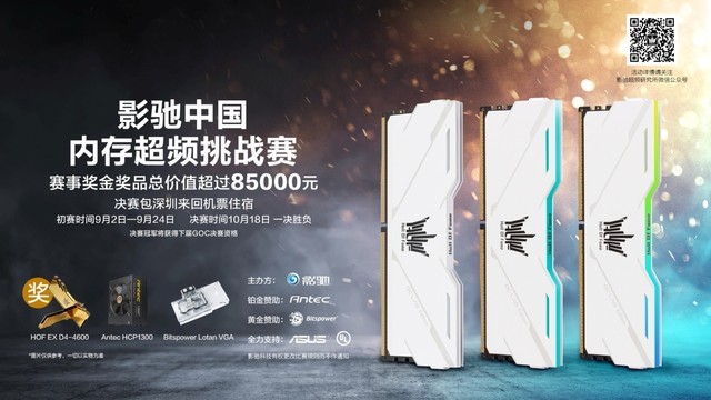 产品:HOF 16GB DDR4 4000 影驰 内存 影驰中国内存超频大赛在线初赛于9月2日正式展开,此项针对全国性的内存超频竞赛将在为期约三周的赛期中产生五个决赛席位,然后争夺总值超过八万五千元人民币的奖金奖品。在开赛的首周已获得不少用户参与并上传成绩,而且成绩也相当不俗,同时大会在每周也会抽出一名幸运儿,首周幸运儿为康松,可获得由安钛克送出价值2299人民币的HCP1300白金电源供应器一份,可喜可贺。