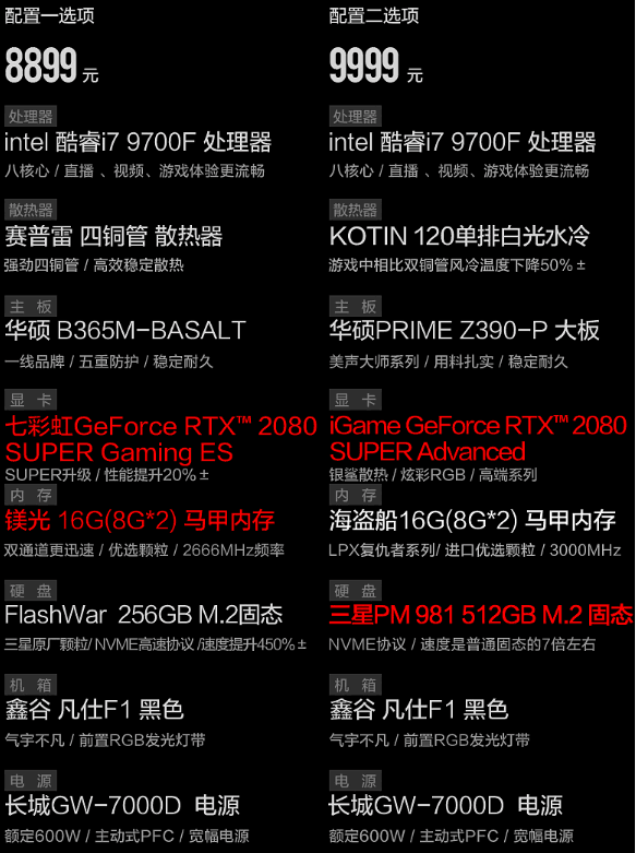 高端玩家的巅峰胜败往往就在一瞬间决定,就和武林高手过招一样,一招定胜负!而在实力相当的情况下,取胜除了靠运气,对决采用的武器也非常重要,而游戏对决的武器就是电脑主机,拥有一台性能强大稳定的主机或许就是高玩决战中取胜的关键性所在!推荐一款京天华盛8999游戏主机,作为一台高端定位的游戏主机,不论颜值还是性能,我相信它都能够满足你的游戏需求,定能让你的游戏体验有质的飞跃。目前这款主机已经全系升级16G(8G*2)双通道内存,以及RTX2080显卡,性能得到了大幅提升的同时做到到手价8499元。