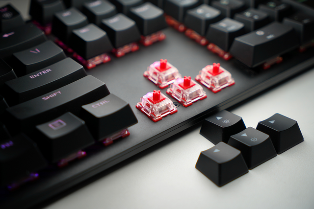 有颜值仅仅是起源RGB游戏机械键盘的一个优点,机械键盘更重要的还是手感。相比而言传统红轴的按键压力45克,触发键程2.0mm,寿命可以达到5000万次;HyperX自主红轴的按键压力同样是45克,但是触发键程只有1.8mm,寿命更是高达8000万次。