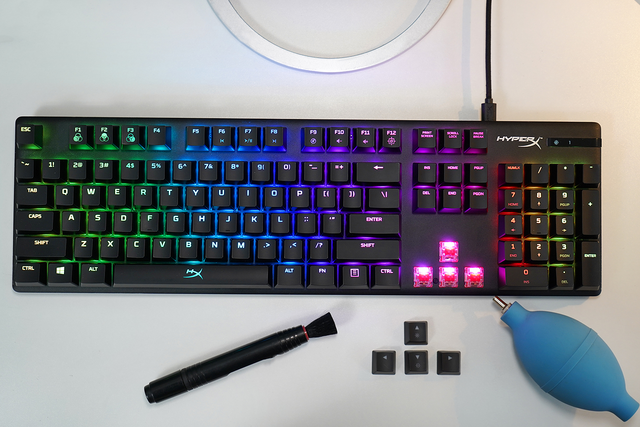 所以,在清洁键盘的时候,就要庆幸当初选择了HyperXAlloyOrigins起源RGB游戏机械键盘,采用悬浮式键帽设计,仿佛平原上的小山包,轻松拔掉键帽就会发现清理污垢无死角,一支毛刷就可以将肉眼可见的污物清理的干干净净。至于键帽,可以用水冲洗干净后晾干,你会发现一个崭新且干净的键盘又回来了。建议键盘至少每个月要清洁一次,才能保证良好的使用体验。