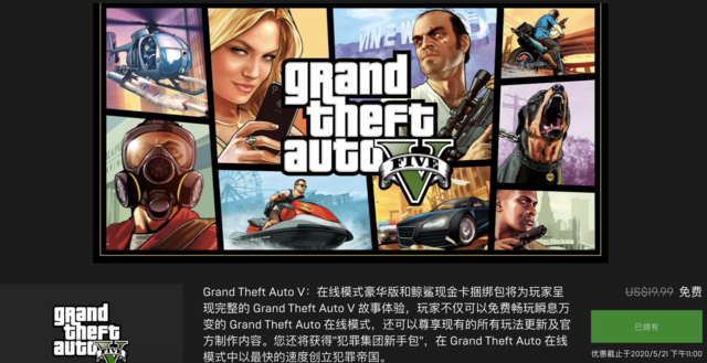 要说最近游戏圈的大事,就不得不提Epic限时免费送《GTA5》。即日起到5月21日晚上11点前,玩家只需登录Epic官网便可免费领取《GTA5》豪华版。很多网友也表示这次的喜加一有点过于香了。