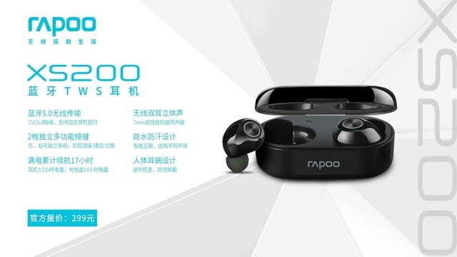 好歌要搭配好耳机听,雷柏XS200蓝牙TWS耳机,真无线入耳式耳机,采用蓝牙5.0无线连接;单耳机仅重4.5g,轻巧便携;双耳机续航3.5小时,搭配充电盒续航可达14小时;CVC6.0降噪,清晰通话;智能连接、多功能盲触按键、防水防汗等贴心使用功能,令雷柏XS200可以胜任工作、生活、娱乐、影音多项任务,是您随身耳机的选择之一,感兴趣的朋友千万不要错过。