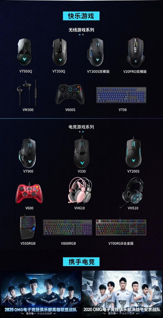 雷柏游戏外设,2008年推出首款游戏产品,迄今已成功打造高端电竞VT与游戏V两大系列,涵盖游戏鼠标、游戏键盘、游戏耳机、游戏手柄等多个品类产品。雷柏以技术研发为核心,以市场需求为指引,以用户体验为宗旨,凭借新科技、新功能、新造型、性价比优势,成功带动了游戏外设的普及浪潮。