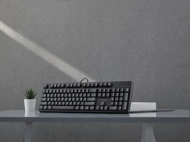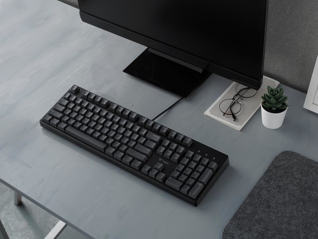 简约风格的104键全尺寸机械键盘,窄边框设计,半高人体工学阶梯键帽排列,是不甘屈服的心跳;纯黑磨砂质感上盖搭配灰色键帽,打造外观层次,精良工艺与经典设计兼备,质感满格,个性态度直观呈现。