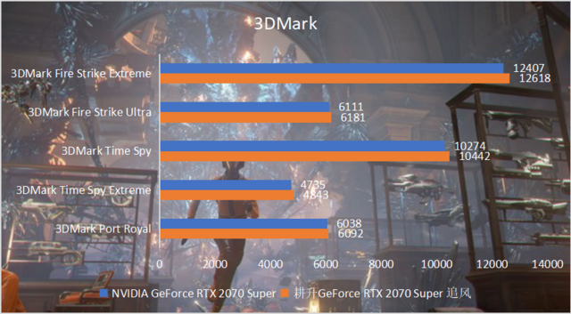 在3DMark性能测试中可以看出耕升GeForceRTX 2070 SUPER 追风显卡,不论是在Directx11还是Directx12环境下理论性能都非常强劲,4K分辨率的测试中高达6181分,光线追踪性能高达6092分,并且相比公版NVIDIAGeForce RTX 2070Super也占有全面优势,如此强劲的理论性能足以满足大部分玩家流畅运行主流游戏大作的需求。高帧率游戏体验,动力源自GeForce!