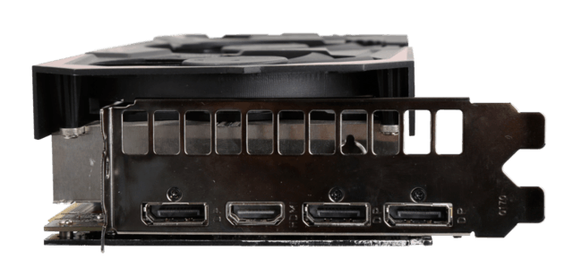显卡配备数字接口,接口规格支持HDMI2.0b*1、DisplayPort1.4*3,其中DisplayPort1.4最高可支持8K视频传输,满足多数玩家日常所需。