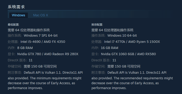 从配置可以看出,该作需求不是很高,中高端产品应该足够了,唯一需求大的应该就是存储空间了。试玩过程中我们也是选择了目前市场上的中高端显卡,RX 5600XT和RTX2060,使用Vulkan API,预设极高画质。