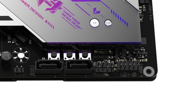 然而大多数主板清理Mos信息都是需要和前面的开关一样,需要用外置设备来短接针脚才能清理,非常麻烦。另外还些主板虽然把Mos设置成按钮形态,然而位置却放在不太合理的地方。如难以触及的显卡插槽底下,如果要清理还要把显卡整个拔下来才行,可以说是非常麻烦了。