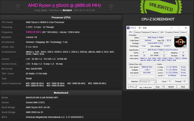 铭瑄是一个已经有十几年历史的老品牌,一直在主板界以稳定性和性价比独树一帜。而最近,铭瑄开始针对主流玩家市场进行开拓创新,在这么久以来的厚积薄发后,铭瑄拿出了方案如此成熟的高规格产品。近日还在CPU-Z的超频网站(euh5dm)上发现了该款主板的身影,把AMD Ryzen R5-5600X超频至5888Mhz的高频,位列排行榜第5名。