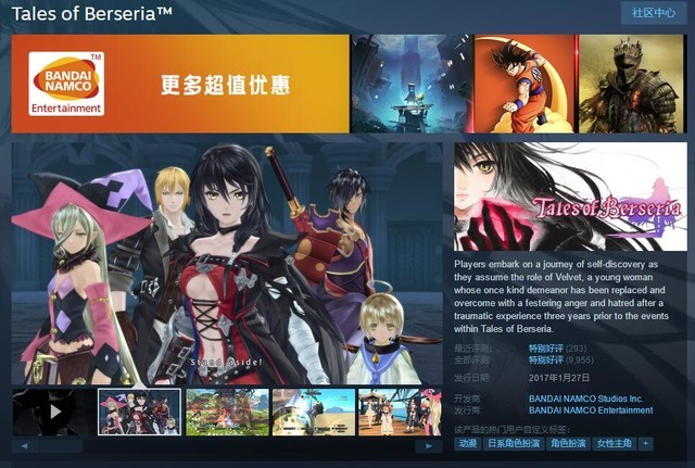 《Tales of Berseria(绯夜传奇)》是一款广受好评的动漫游戏,该作是第一次以女性作为第一主角的《传奇》系列作品,主题是“感情”与“法理”的对立,讲述主角Velvet·Crowe为了复仇而与利益一致的同伴们一同对抗正义的救世组织、王国的实际统治机构圣寮的故事。这款游戏在steam共有10000篇左右评测,整体为特别好评,目前夏促降价85%,只要40元。