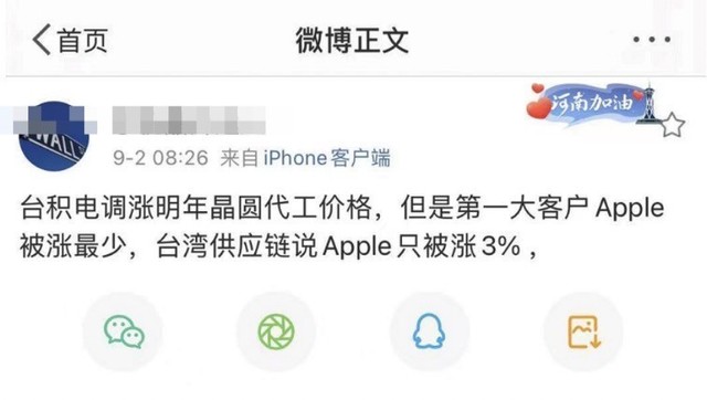 可近日供应链传出消息,台积电对第一大客户苹果涨幅最低,仅为3%。