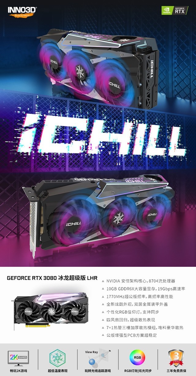 这里推荐大家使用来自映众RTX3080冰龙超级版显卡,采用最新NVIDIAAmpere架构核心,相比上一代拥有更多的CUDA核心,配备有8704个CUDA处理器,,Boost频率1770MHz,显存方面依然是最新的GDDR6X显存,容量达到了10GB320Bit,运行速度高达19Gbps。